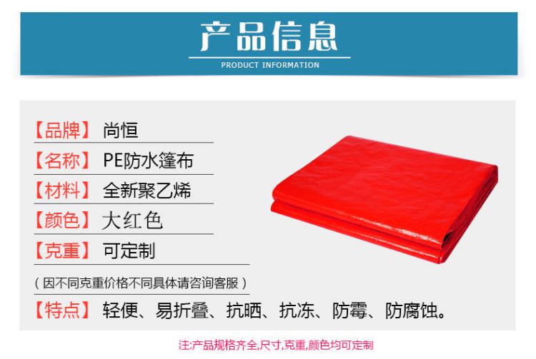 大紅色PE防水篷布產品信息參數