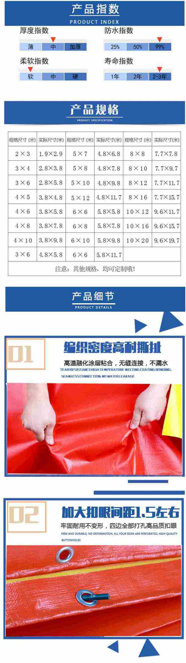 備注:克重70g-240gPE防水篷布都有加工定制,橘黃色PE防水篷布